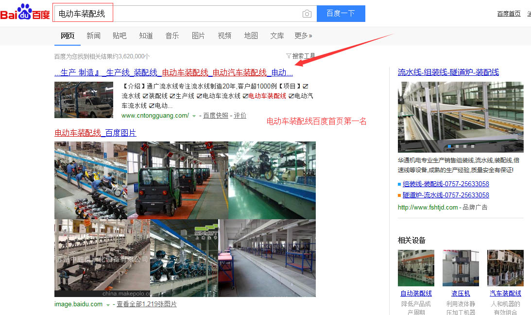 “電動(dòng)車裝配線”百度首頁(yè)第一名,請(qǐng)看下方截圖 ,“電動(dòng)車流水線”,“電動(dòng)汽車流水線”,“電動(dòng)汽車裝配線”,等等,很多關(guān)鍵詞都在百度首頁(yè),請(qǐng)看如下截圖,有圖為證。在此特意感謝臺(tái)州SEO(通盛網(wǎng)絡(luò))人員為我公司網(wǎng)站所做的付出與努力
